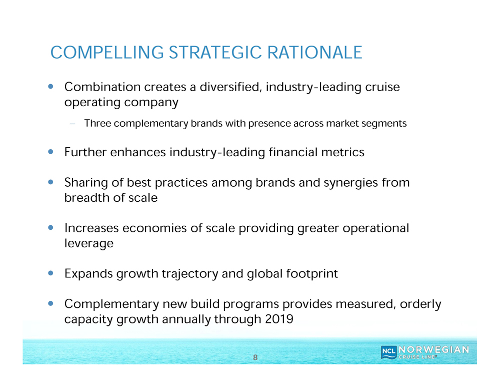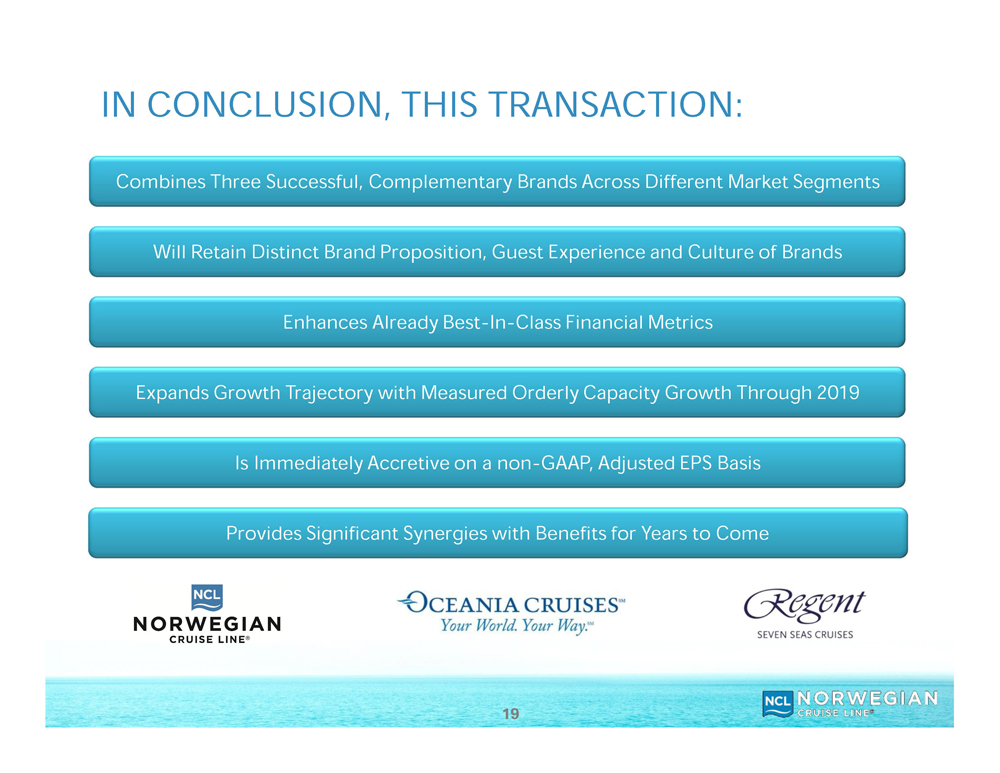 Combines Three Successful, Complementary Brands Across Different Market Segments Will Retain Distinct Brand Proposition, Guest Experience and Culture of Brands Enhances Already Best-In-Class Financial Metrics Expands Growth Trajectory with Measured Orderly Capacity Growth Through 2019 Is Immediately Accretive on a non-GAAP, Adjusted EPS Basis Provides Significant Synergies with Benefits for Years to Come