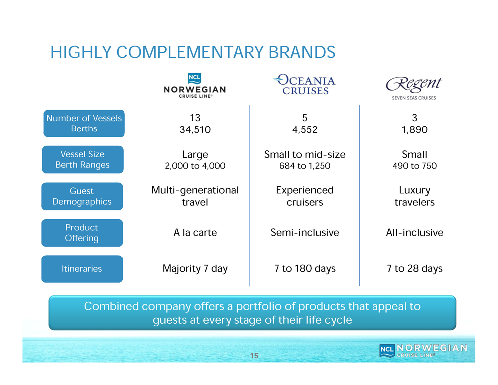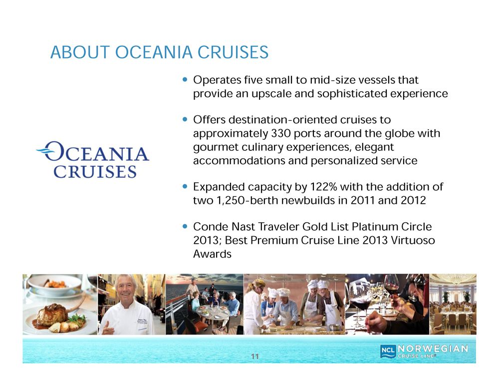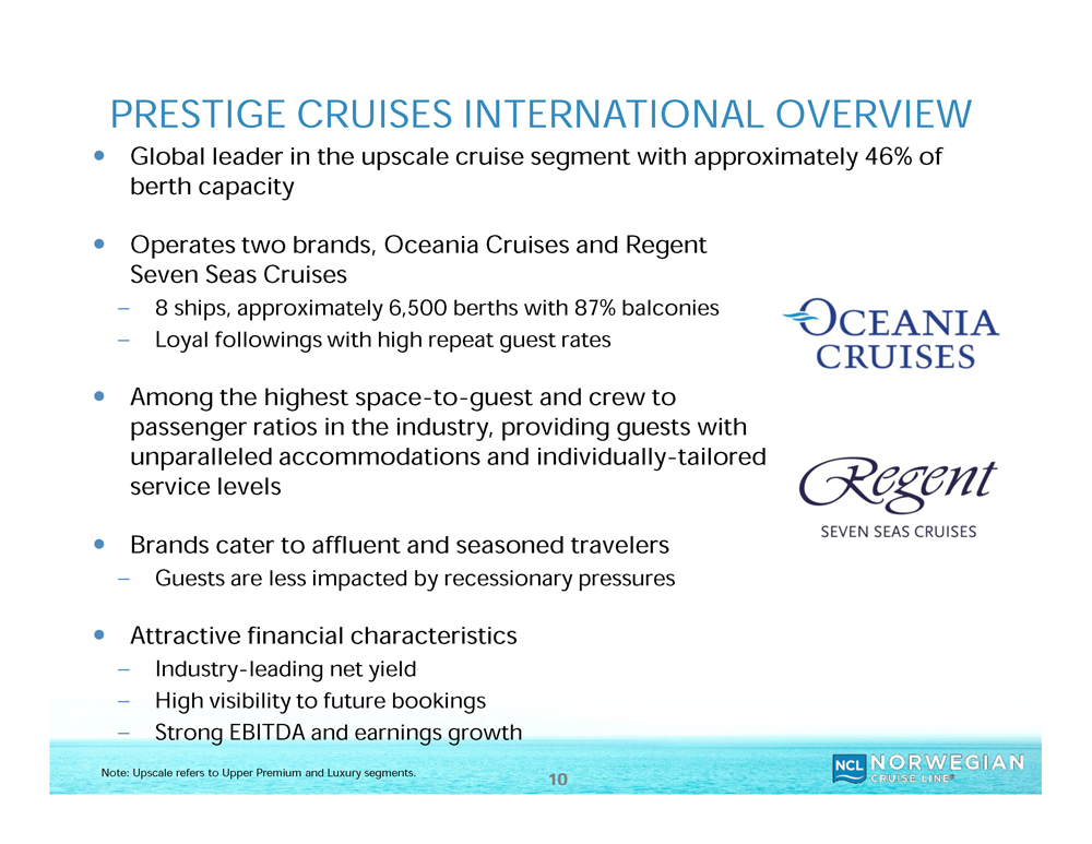 Operates two brands, Oceania Cruises and Regent Seven Seas Cruises