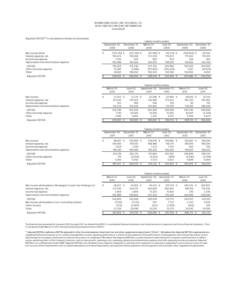NORWEGIAN CRUISE LINE HOLDINGS LTD. NON-GAAP RECONCIL